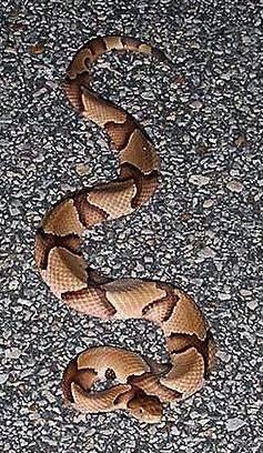 • Snakes - Yes, we do sometimes hunt mushrooms in snake country and usually we are preoccupied with looking for mushrooms, not snakes. This can lead to serious problems so, as with ticks, avoiding a bite is best. Snake gaiters are Kevlar wraparounds that cover your lower legs and even the biggest rattlesnake or copperhead cannot bite through them. One source is Cabelas, which often has them on sale. Depending on the color, they may help you see ticks on your lower leg, but whatever the color they will keep your lower pants and socks dry and help avoid briar scratches. Shown below (L) is a timber rattlesnake (Crotalus horridus). Copperheads (R) are also found in PA, but they are not nearly as common as rattlers. What to do if you encounter a snake (compliments of the Sierra Club).