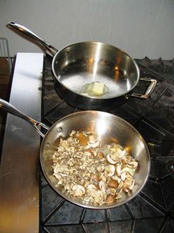 - ¾ lb (about) white button mushrooms, coarsely diced (1/8” pieces), and sautéed in butter